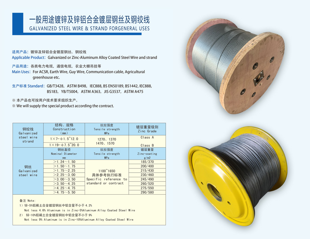 通信光電纜用鍍鋅鋼絲通信光電纜用鍍鋅鋼絞線機編鋼絲網用鍍層鋼絲防振錘用鋼絞線一般用途鍍鋅及鍍鋅鋁合金鍍層鋼絲及鋼絞線預絞式金具用鍍層鋼絲制釘用鍍層鋼絲
